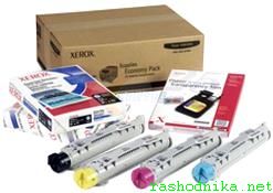 | Состав /Includes/: | One of each cyan, magenta, yellow and black standard-capacity toner cartridges 500 sheets of A/letter size Xerox Color Xpressions Paper (24lb) 100 sheets of A/letter size Xerox Digital Color Gloss Coated Paper (100lb) 50 sheets of A/letter size Xerox Phaser Premium Transparency Film |